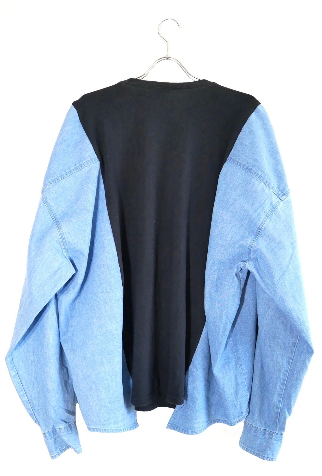 こちらはブラックのアメフトTとデニムシャツのドッキングにより、